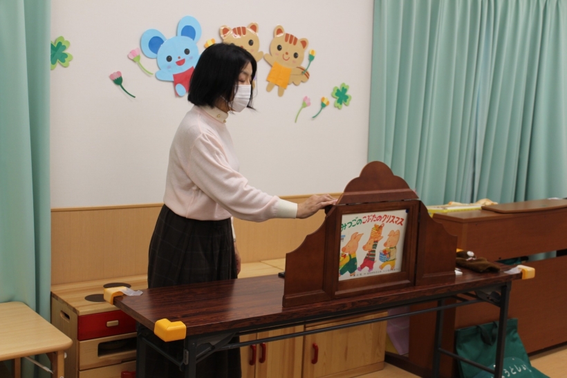 おはなし会に参加しました【ぱんだ組・きりん組・ぞう組】 南陽図書館の職員の方が来園し、絵本や紙芝居の読み聞かせをしてくれました。 それぞれのクラスにあったお話を用意してくれて、子どもたちは楽しんで観たり聞いたりしていました。 最後に、保育園に向けて、図書館の本をたくさん貸していただきました。 子どもたちと、楽しく読んでいきたいと思います。