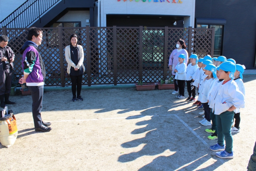 保育園で植えている苗を想像していた子どもたちは、自分たちよりも大きなみかんの木に驚いていました。