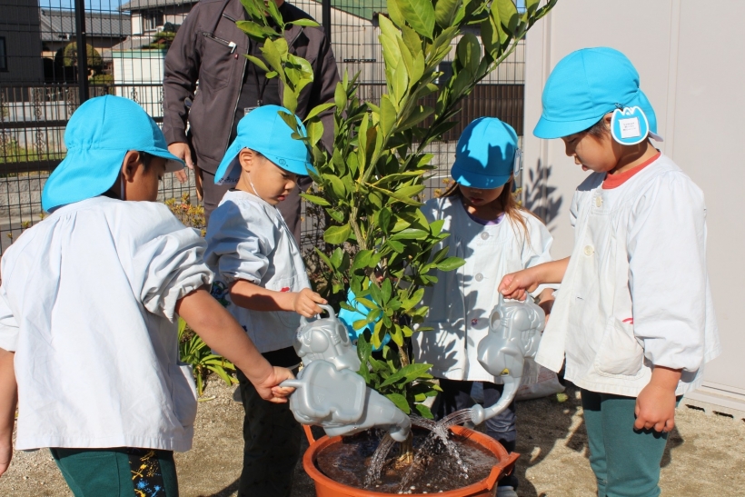 みかんの木が大きく育って、アゲハちょうが集まり、おいしいみかんが実るといいですね。