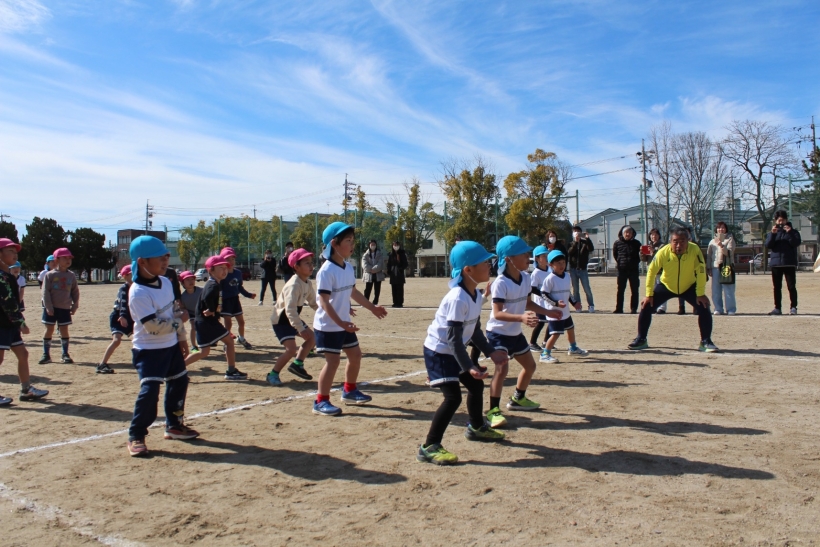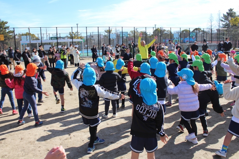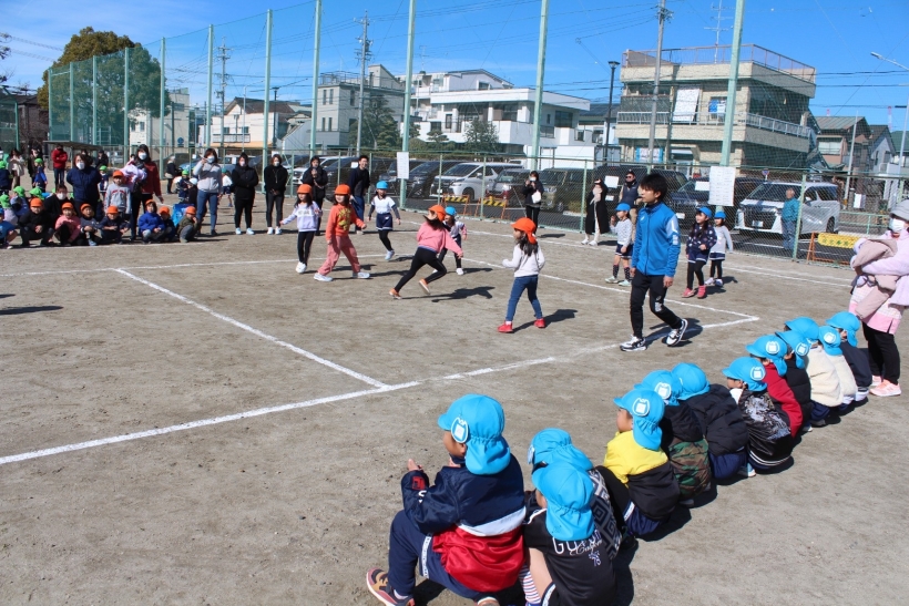 道徳公園に、道徳保育園、みなみ保育園、しんもりやま保育園、ほうしょう保育園、ちゃやひるず保育園の年長児が集まりました。