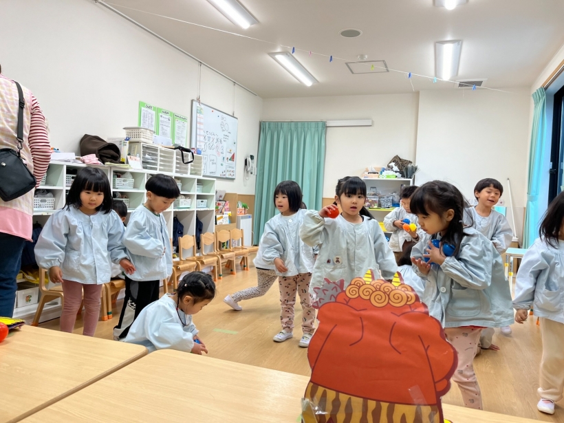 節分に、豆まきをしました。