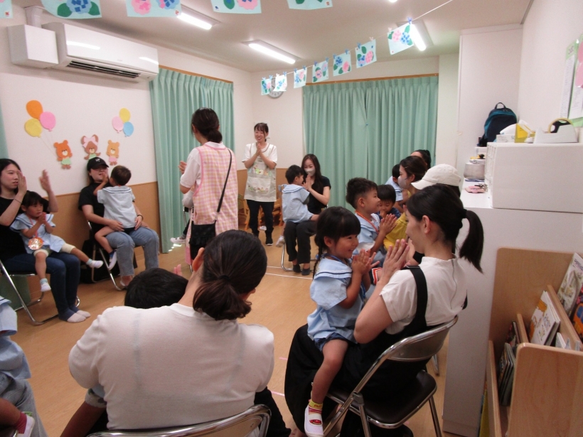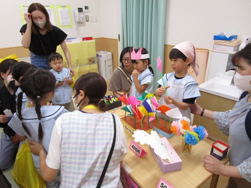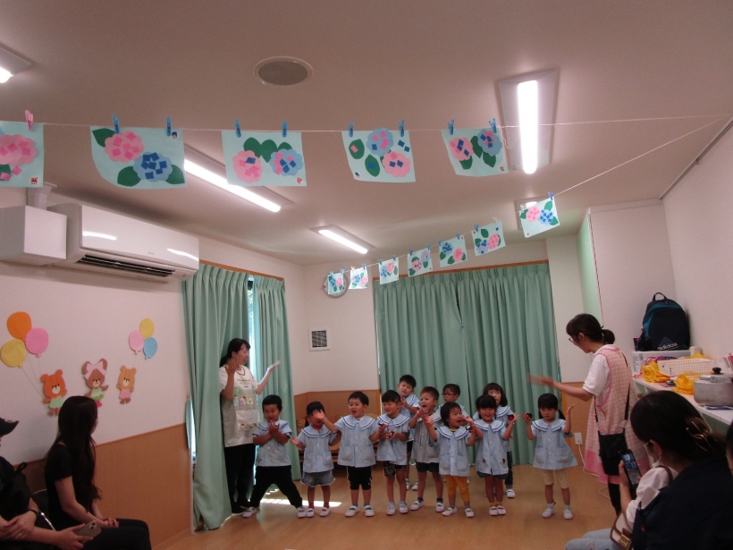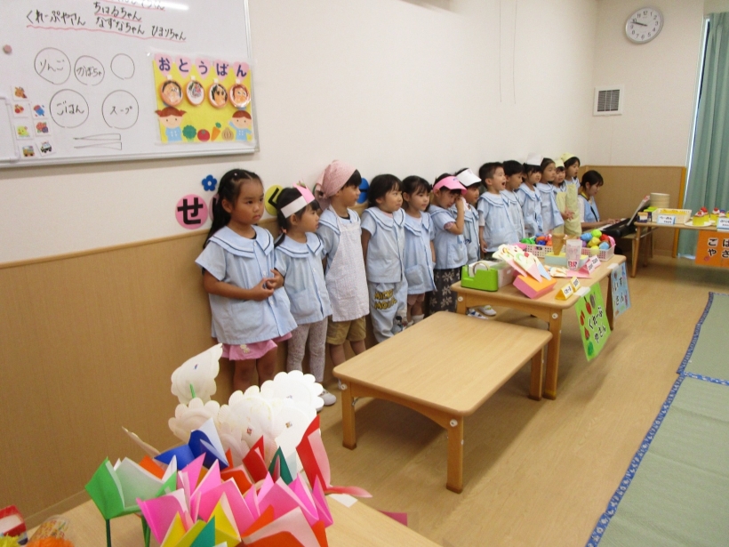 きりん組は、歌を歌ったり、普段遊んでいるお店屋さんごっこをおうちの方と一緒に楽しんだりしました。
