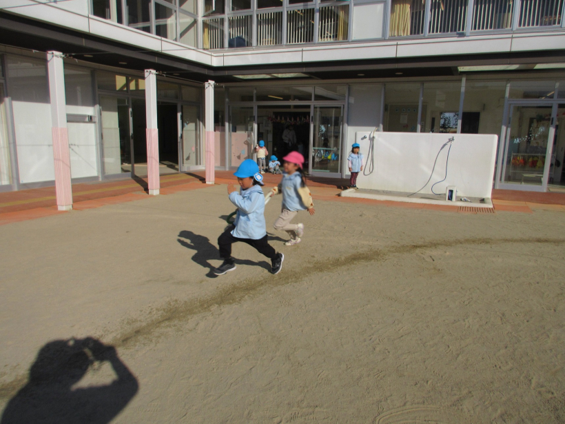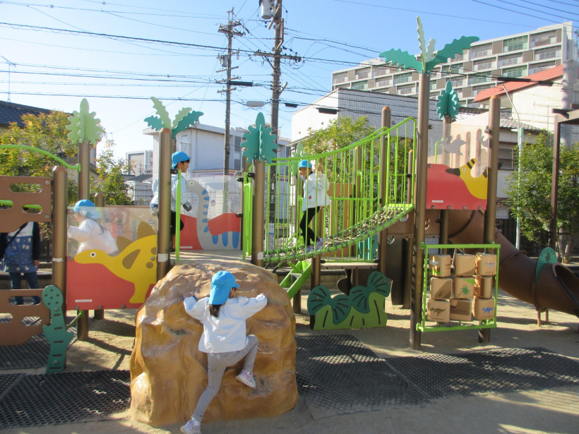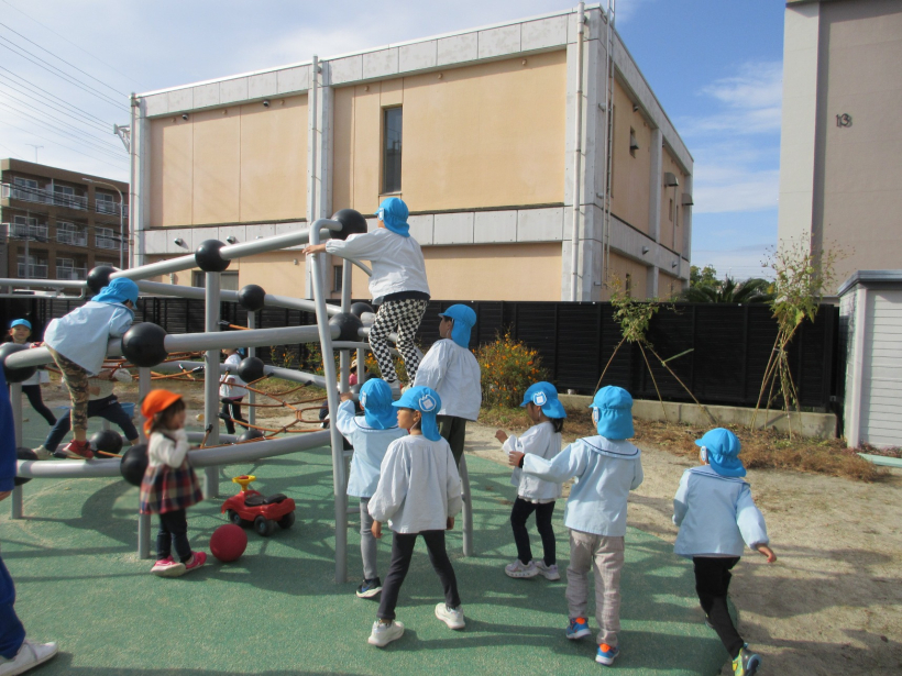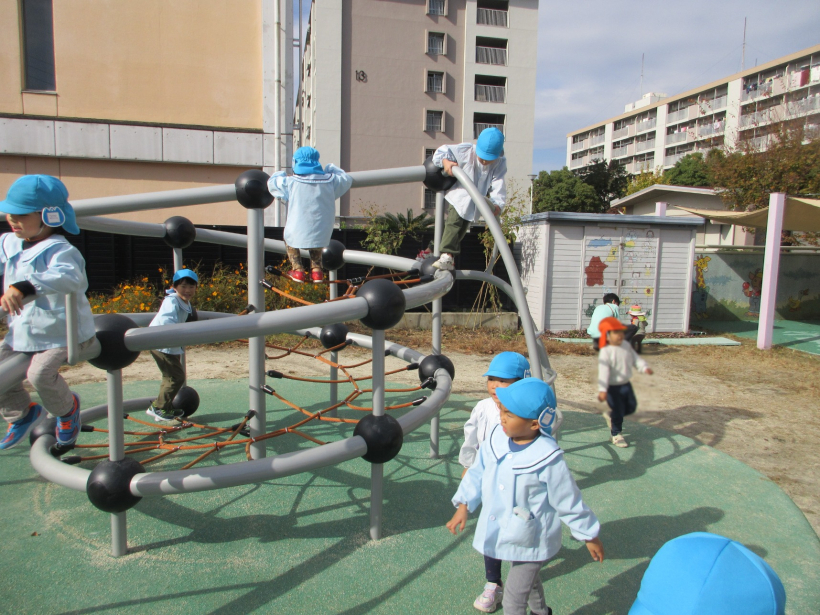 園庭に出て新しい遊具で遊ばせてもらいました。