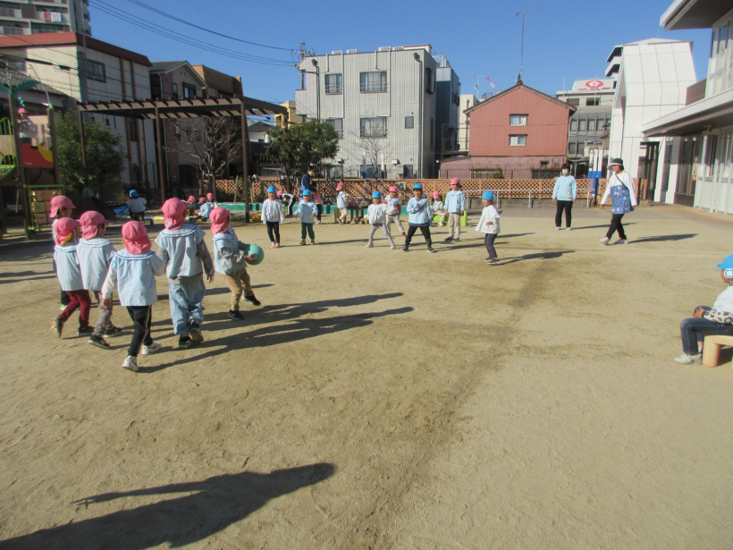 ほうしょう保育園では、自己紹介をしたり、なんでもバスケットをしたりして遊びました。