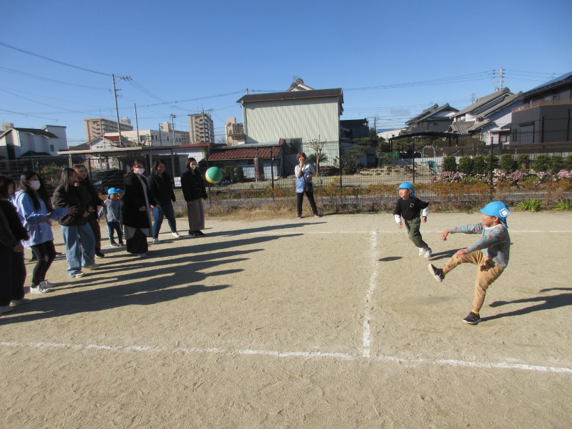その後、園庭で子どもたちの好きなドッジボールをして遊びました。