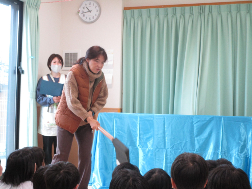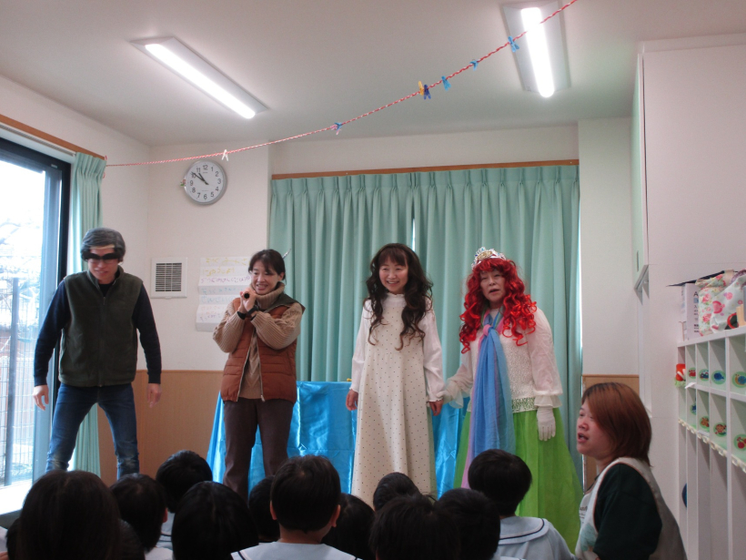 保育者からのプレゼントは、「金の斧、銀の斧」の劇でした。