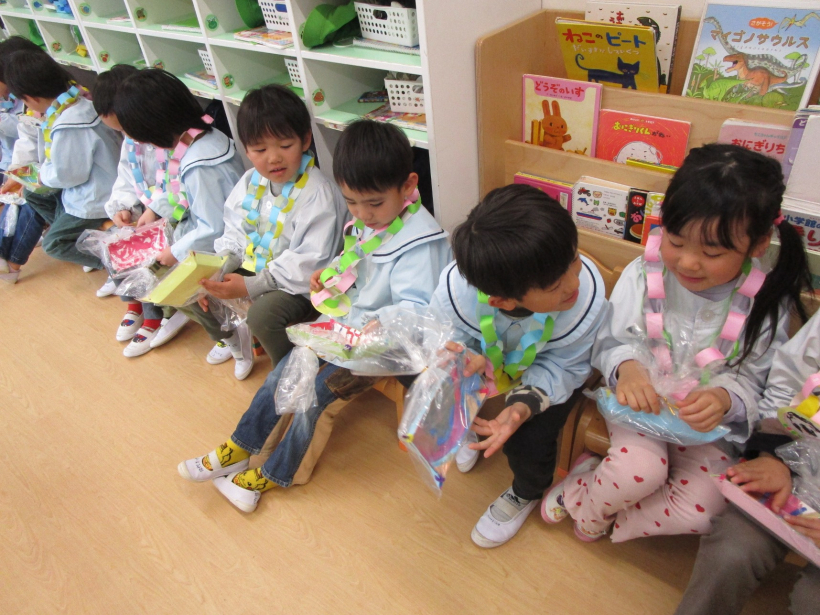 今まで一緒に遊んでくれたぞう組に、感謝の気持ちを込めて作ったプレゼントを渡しました。