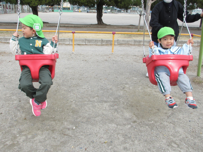 道徳公園では、シーソーやアスレチックなど色々な遊具で遊びました。
