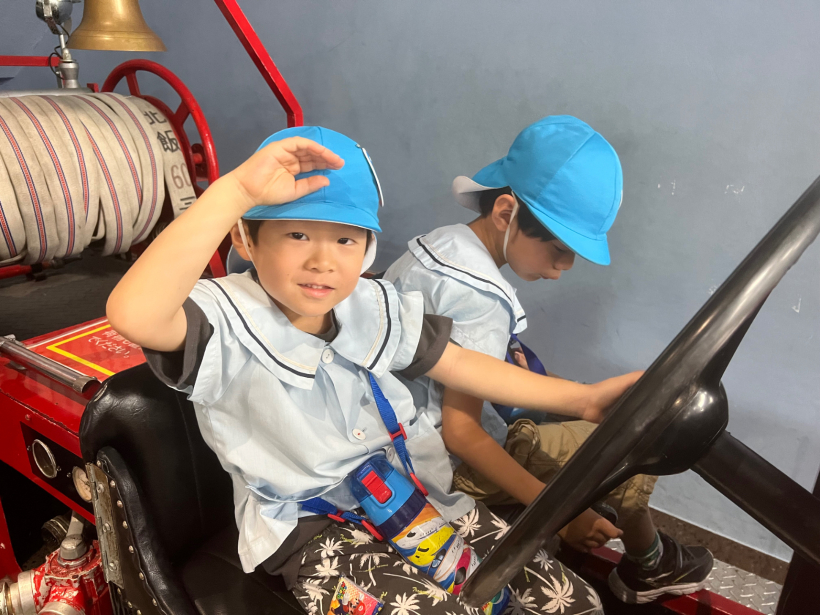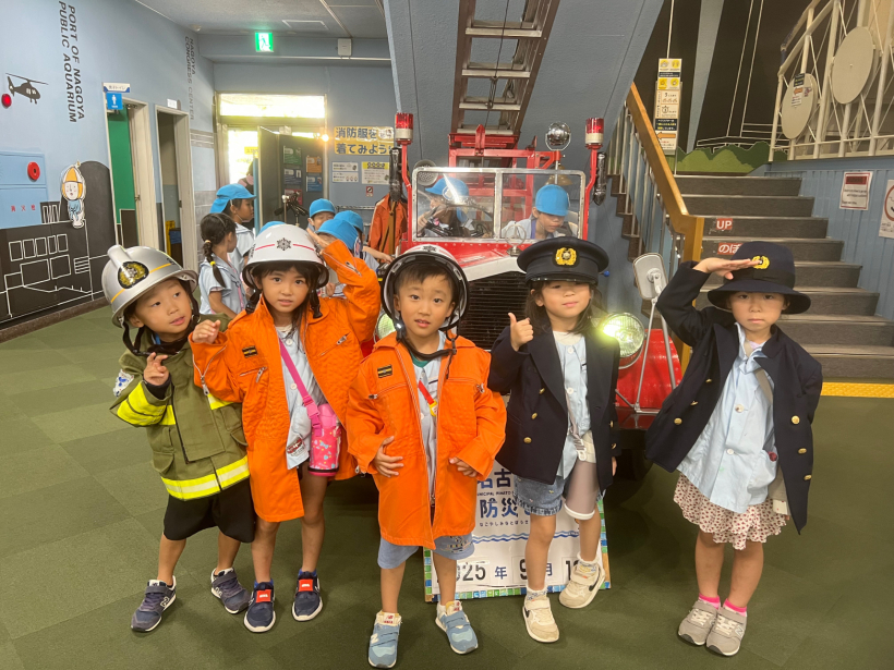 消防士さんの服を着たり、消防車やヘリコプターに乗ったりしました。