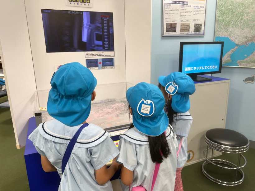 実際に起きた災害の写真や映像も真剣に見ていました。