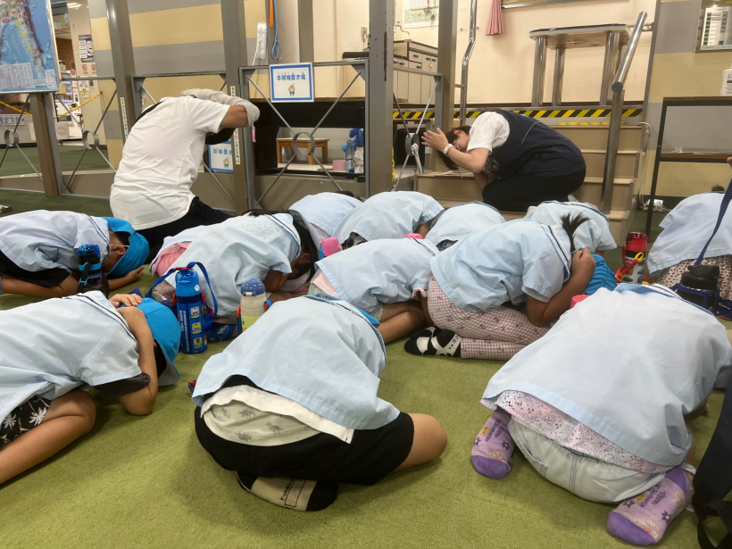 避難訓練で習慣となっているので、頭と首を守って上手に避難する事が出来ました。