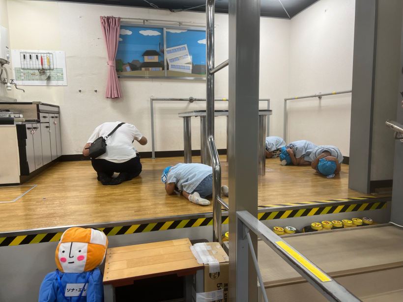 震度7の地震や火災時の避難の仕方を実際に体験して学びました。