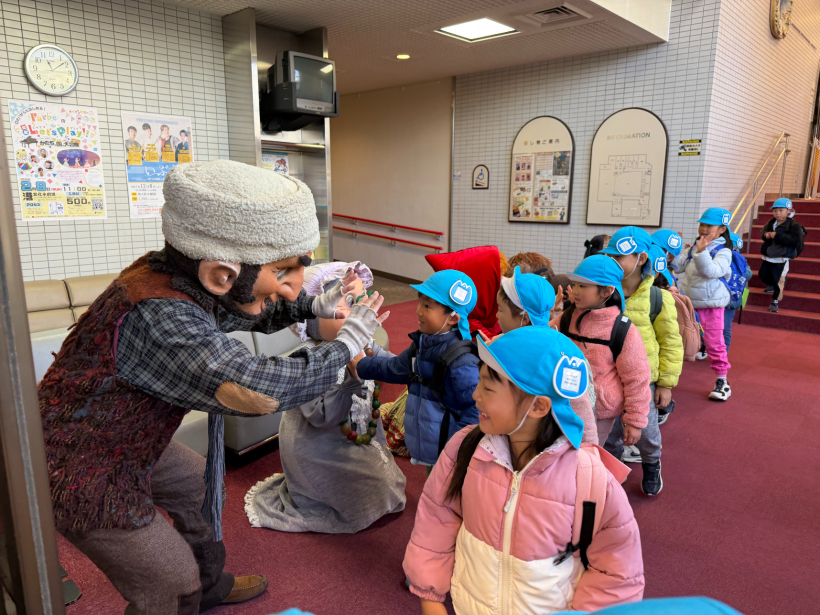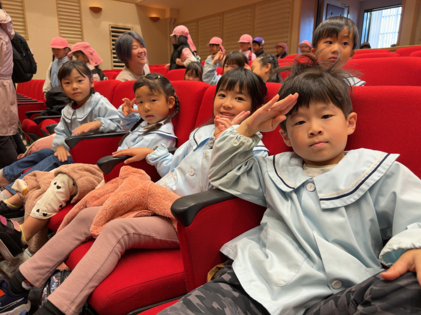 バスに乗って港文化小劇場までお出掛けをし、年長児のつどいに参加しました。