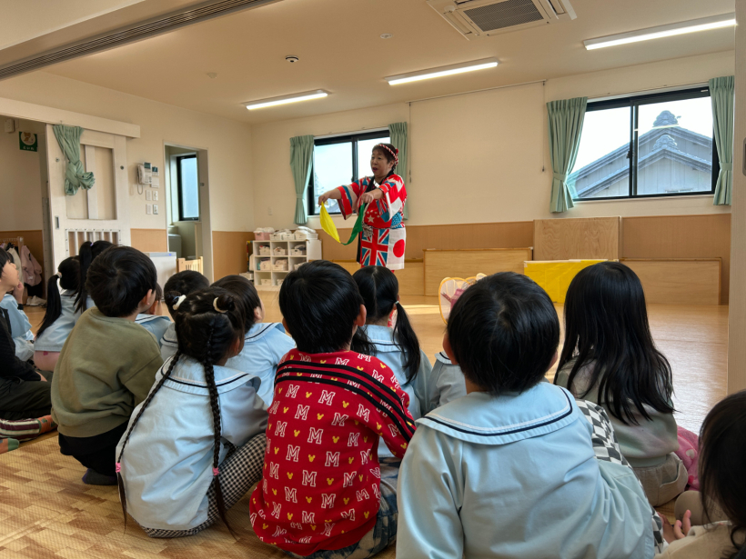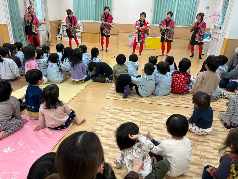 「さて、さて、さてはなんきんたますだれ♪」の合いの手に合わせながら、すだれの形が次々に変化していくと、子どもたちは驚いたり、喜んだりして見ていました。