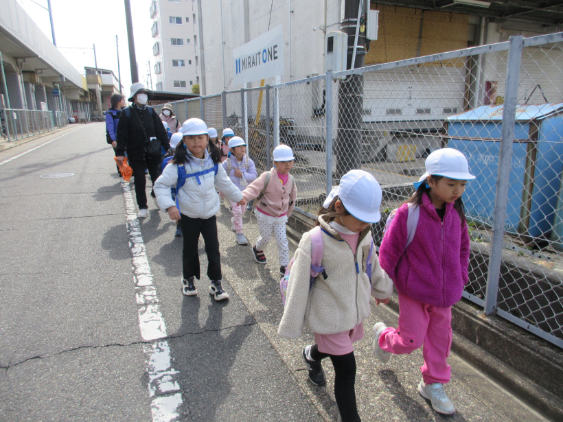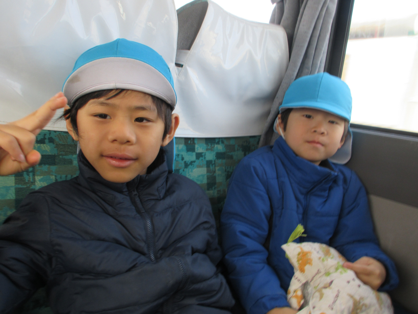 ほうしょう保育園と一緒にバスに乗って、道徳公園に向かいました。久しぶりに会えた友だちもいて、「おはよう!」「おぼえてる?」と嬉しそうでした。