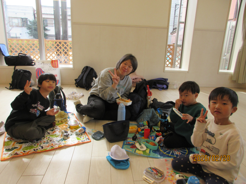 ドッジボール大会の後は、みなみ保育園に移動して、保護者の方が作ってくれたお弁当を食べました。