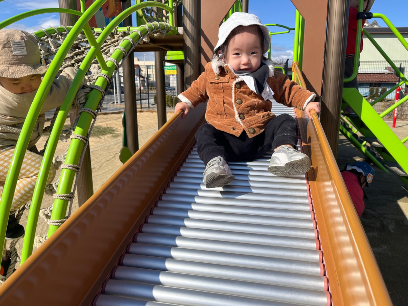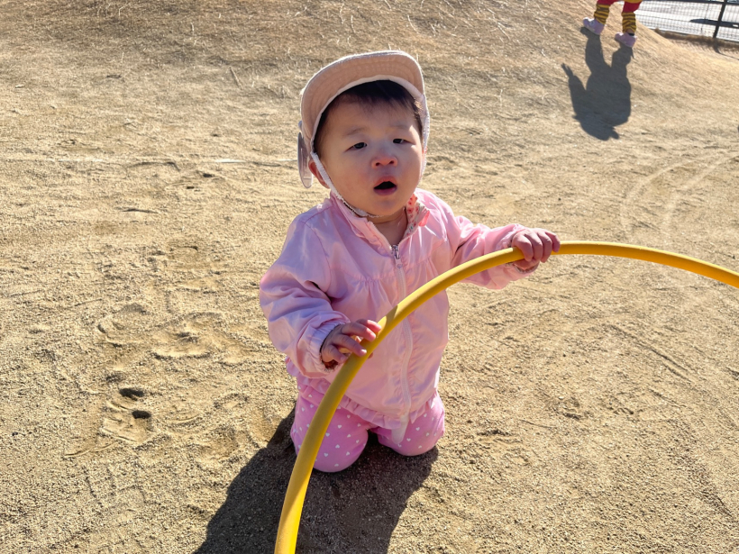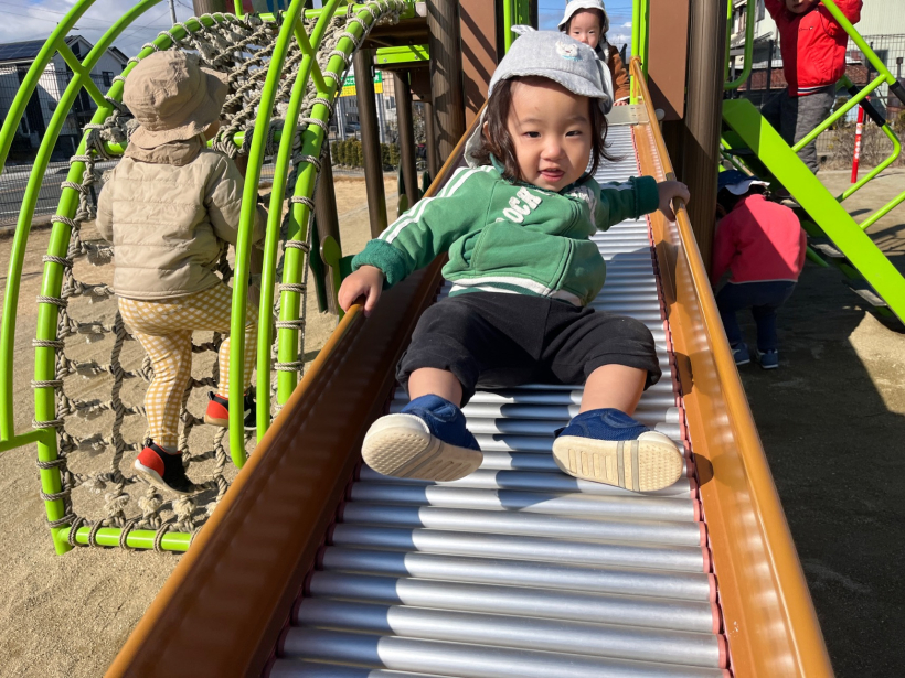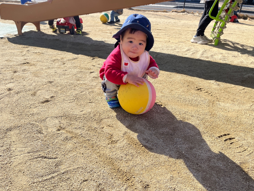 ボールあそびや大型遊具の滑り台、コンビカー、フラフープなど異年齢児の真似をして遊べるようになり、遊び方もダイナミックになってきました。