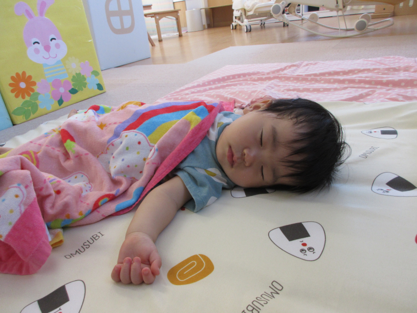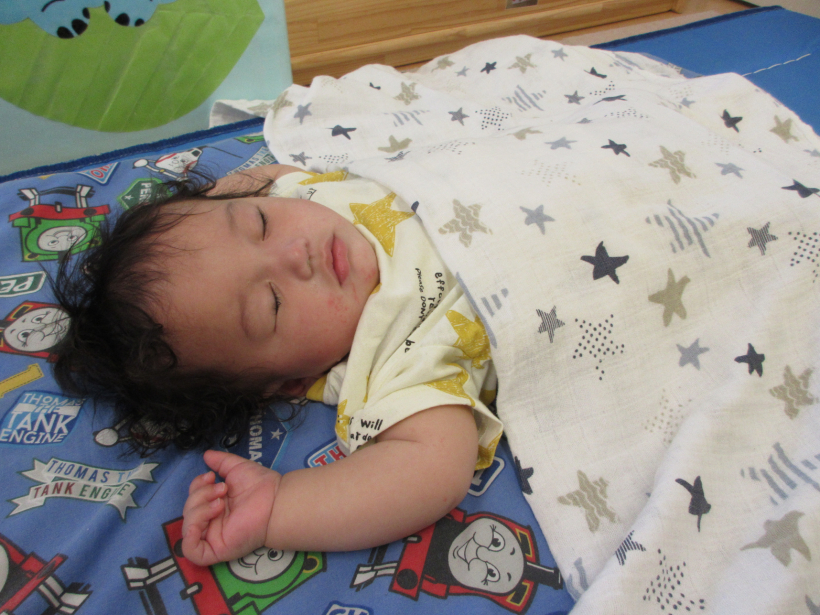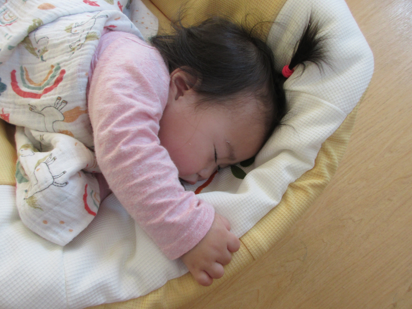 午睡時間には抱っこで眠っていく子どもたちの寝顔がとても穏やかな表情で癒されます。