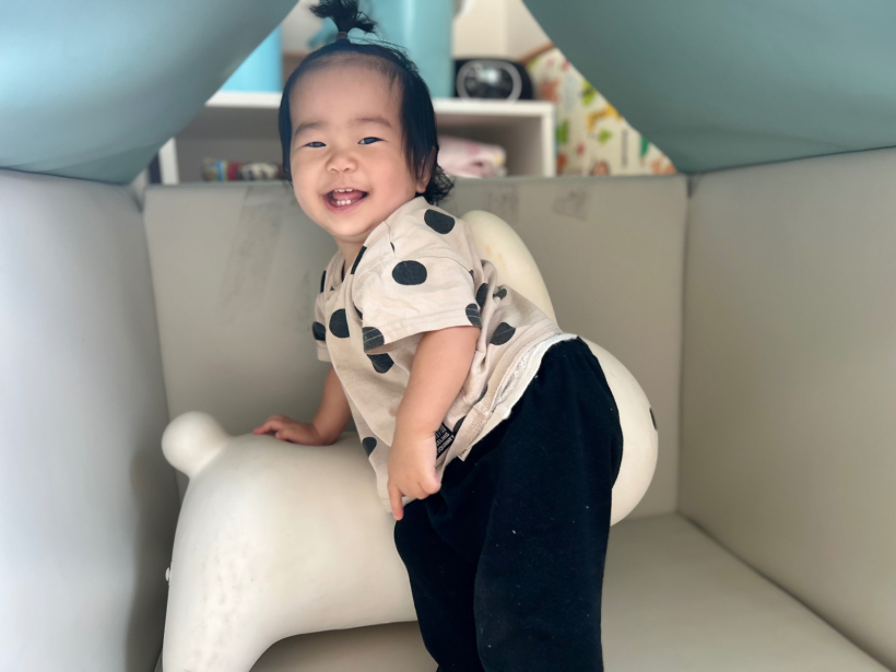 最近はつかまり立ち、伝い歩きなどをする姿が増えてきました。