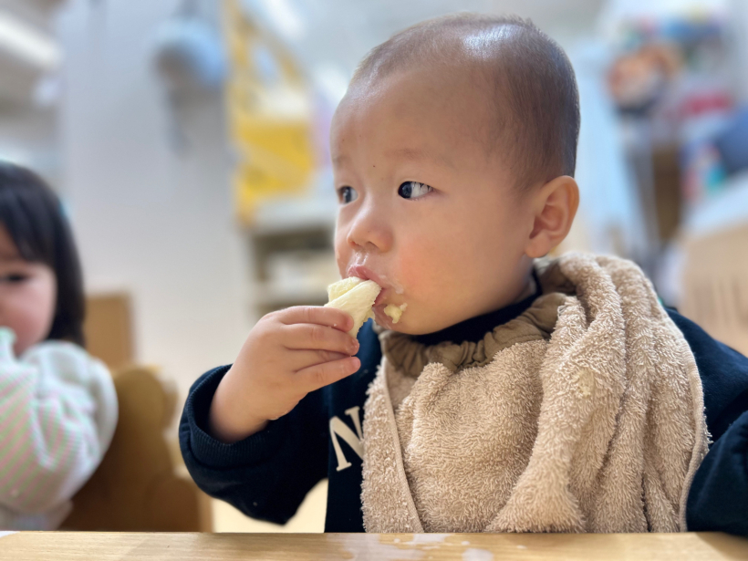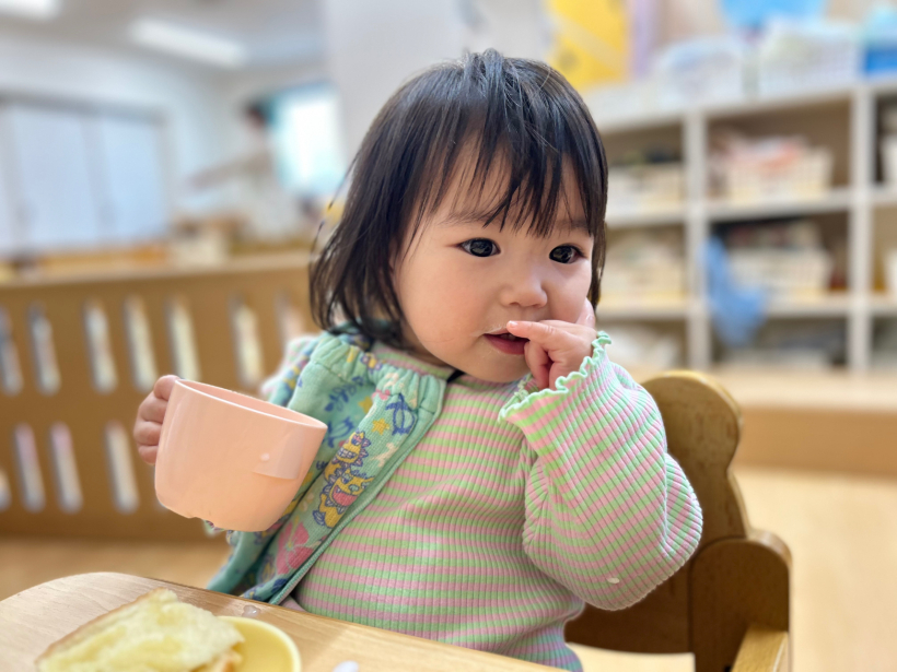 生活の流れが理解できるようになってきて、最近は朝おやつの用意をしていると自分で椅子に座り、嬉しそうにおやつを頬張っています。