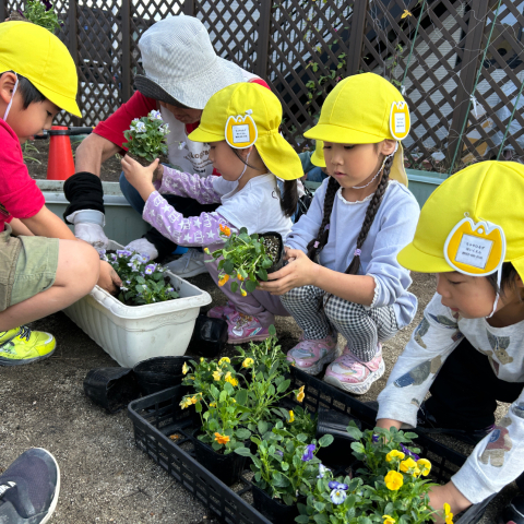 パンジーとビオラの苗をプランターに植えました。 「もっとやりたい!」...