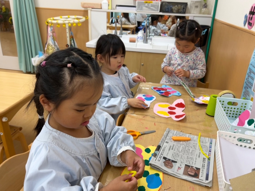 好きな色を選ぶ子や中には全色使う子もいて、個性豊かなちょうちょが沢山出来上がりました。