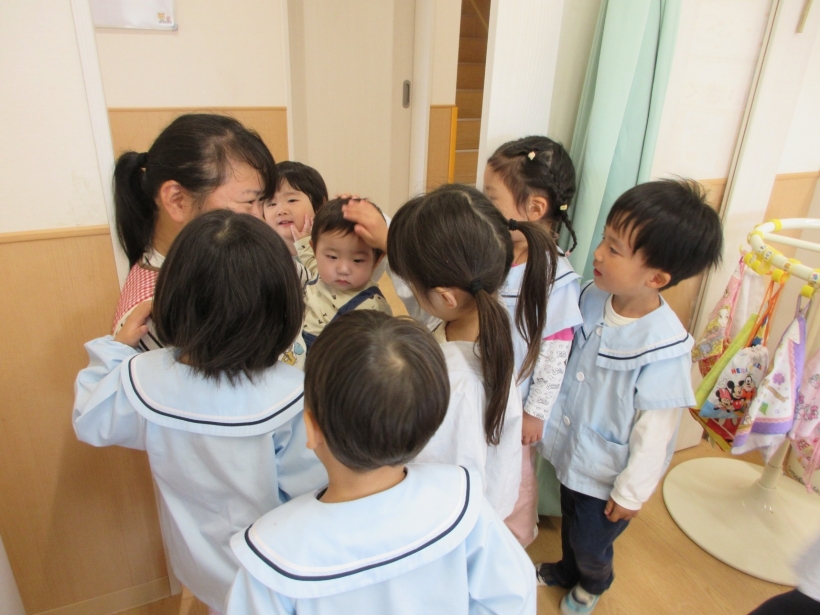 みんなすぐに集まって、「かわいい」「ちいさいね」と優しく声を掛けたり、頭を撫でたりと可愛いくて仕方のない様子でした。