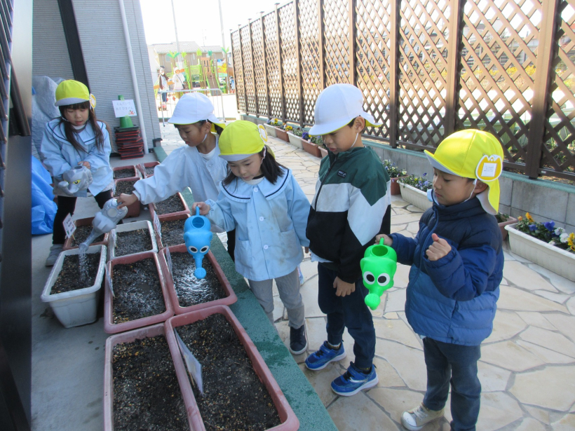みんなで育ててきたチューリップがようやく芽を出しました。「せんせいみて!」「ちゅーりっぷのはっぱがでてきたよ」と見つけた瞬間とても嬉しそうでした。これからも、みんなで水やりをして大切に育てていきたいと思います。