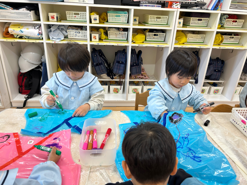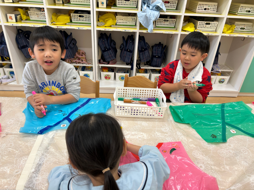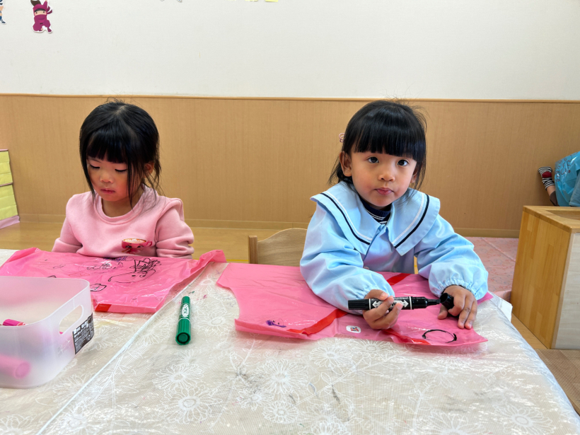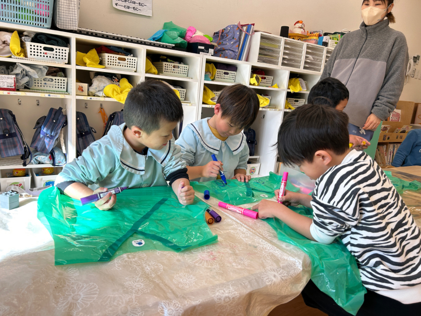 劇遊びの忍者の衣装に絵を描きました。