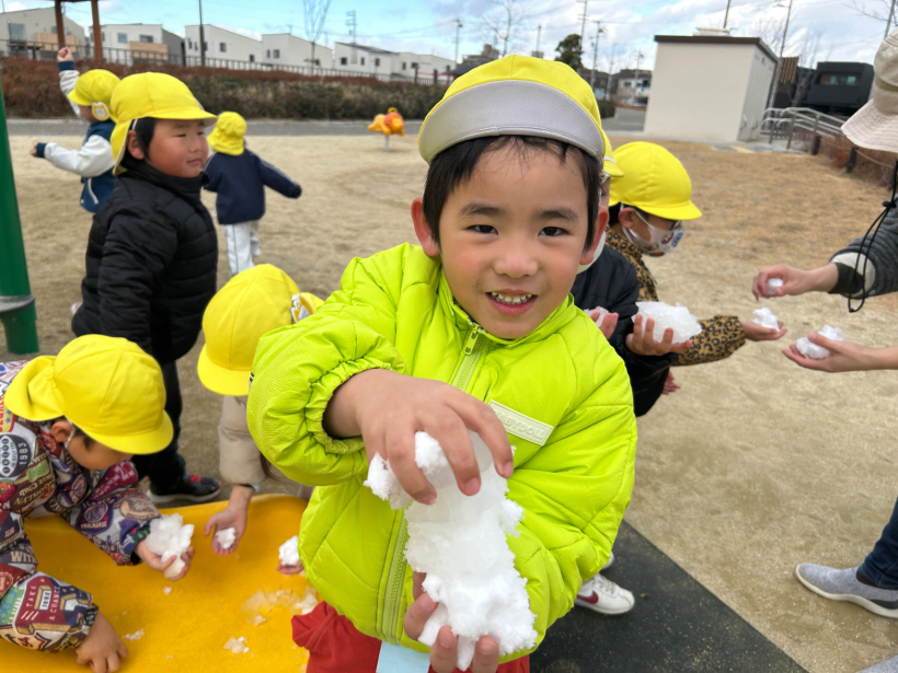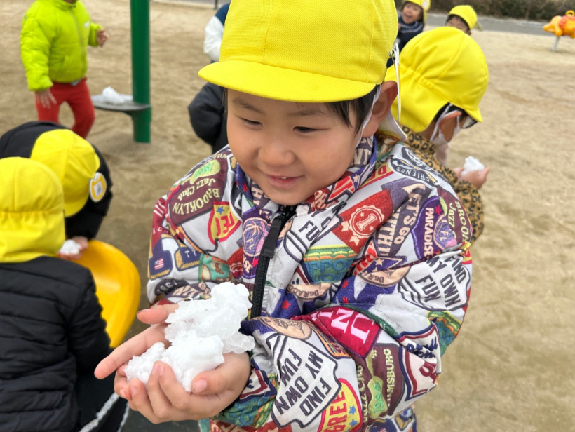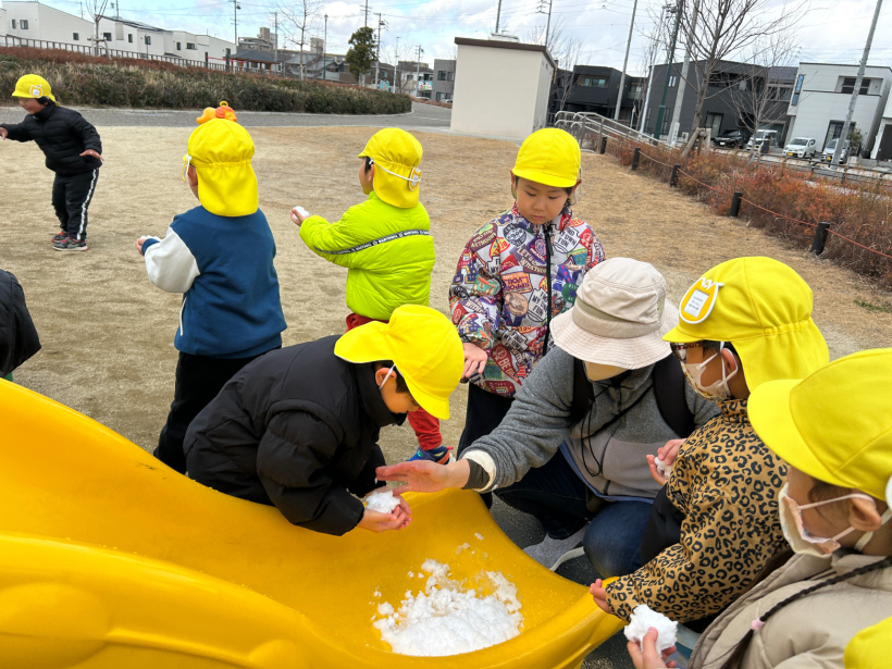 滑り台の下にほんの少し積もっていて、みんなで少しずつ触りました。