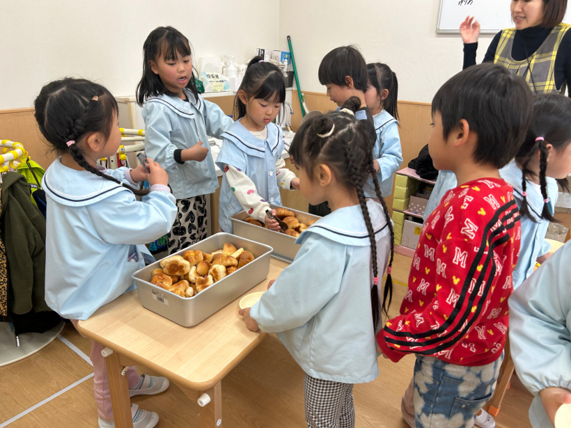 クロワッサンにウィンナーパン、ミルクパンと子どもたちの好きなパンばかりなので、おかわりもあっという間になくなりました。