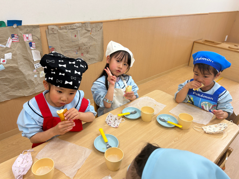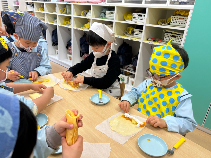 もうすぐ卒園するぞう組さんに今まで優しくしてもらったお礼にクレープを作りました。