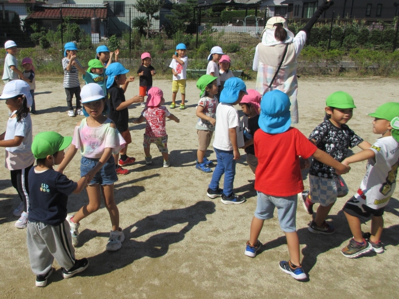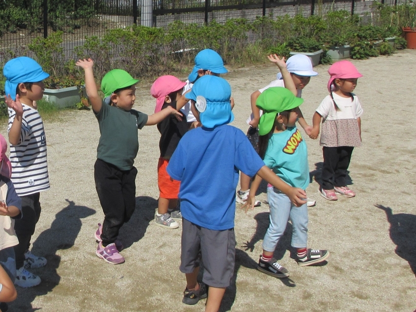 「がんばるぞ、おー!」の掛け声をしてから、元気に体を動かしています。