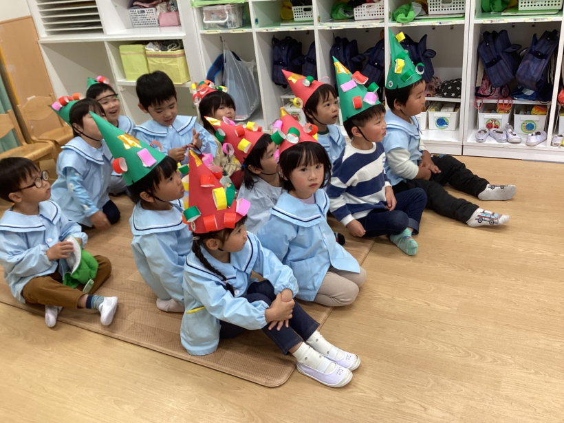 クリスマス会の後ぱんだ組の部屋で、サンタクロースが来てくれることを待っていました。