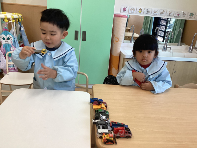 室内遊びでは、恐竜のフィギュアやブロックを組み立てたり、好きな遊びを楽しんでいます。