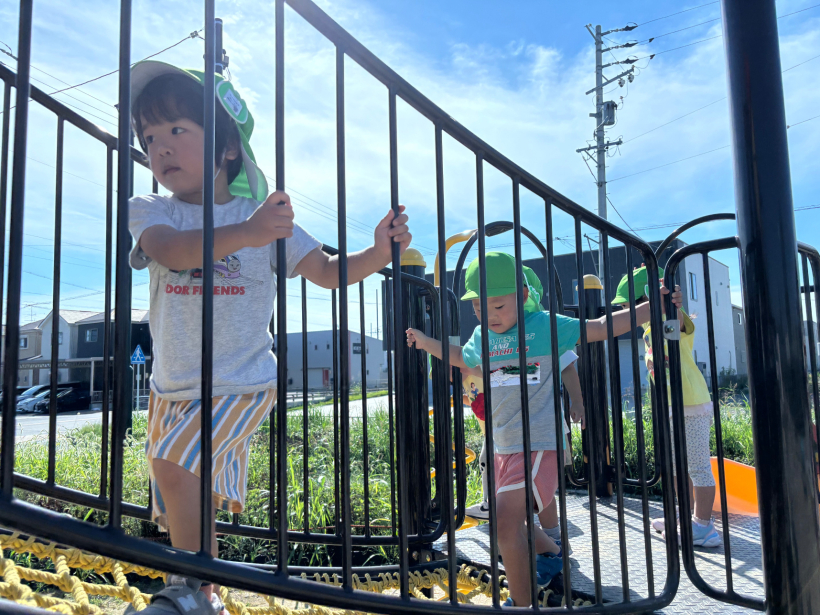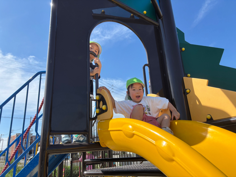 園庭遊びでは、友だちと一緒に好きな遊びを楽しんでいます。