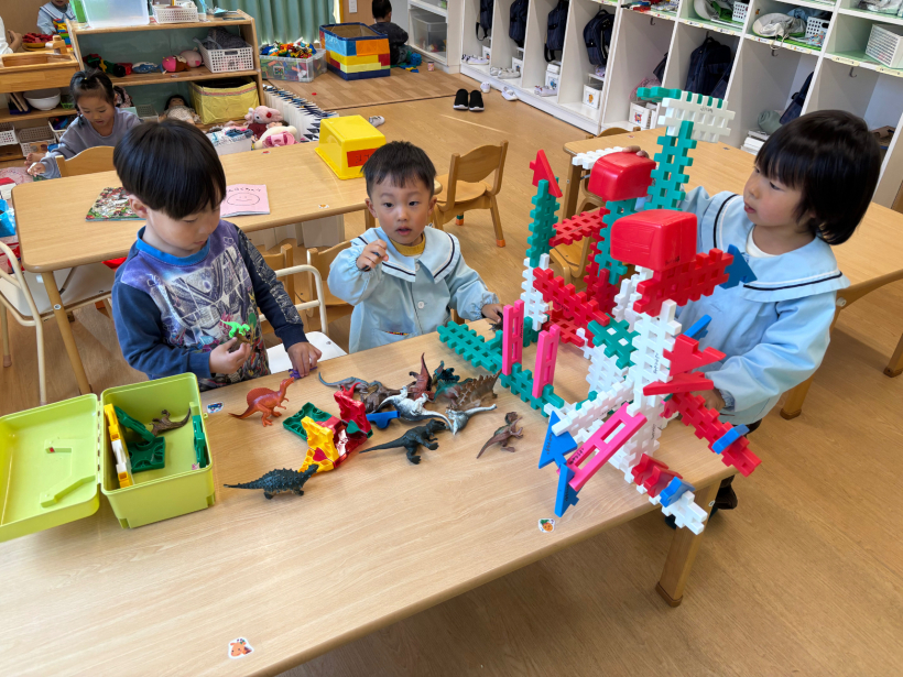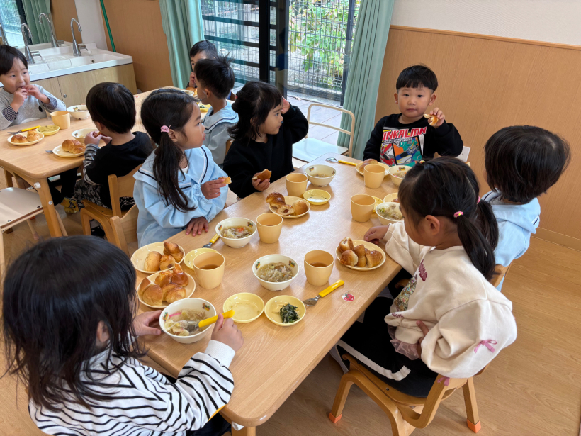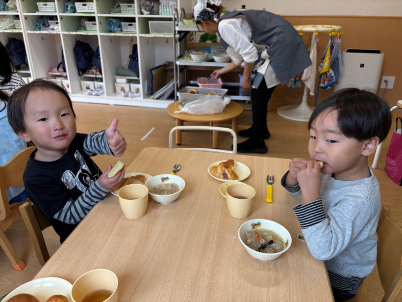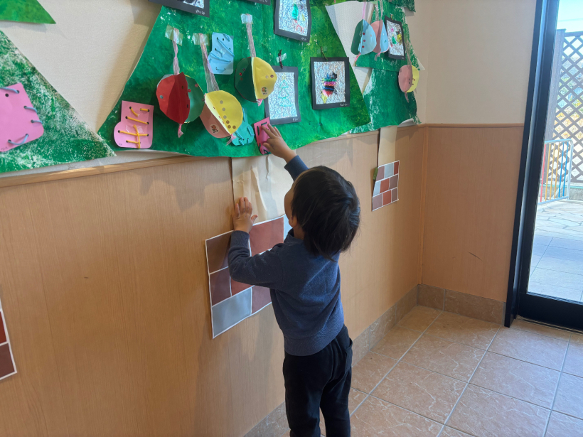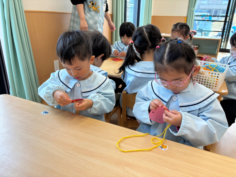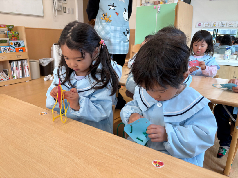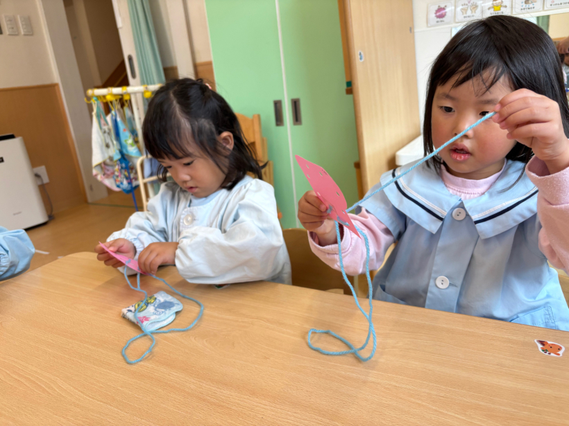 ぱんだ組クラスニュース【12月】 パンバイキングがありました。 大好きなパンをたくさん食べることができ、とても嬉しそうな子どもたちでした! ひも通しでクリスマスツリーの飾りを作りました。 みんなとても真剣な表情で取り組んでいました! 完成したものは玄関にあるクリスマスツリーに飾りに行きました。 室内遊びでは自分たちで様々な遊びに発展させていくようになりました。 散歩では公園に行ったり、園周辺を探検しています。 本格的に寒くなってきましたが、たくさん散歩に出かけたいと思います。