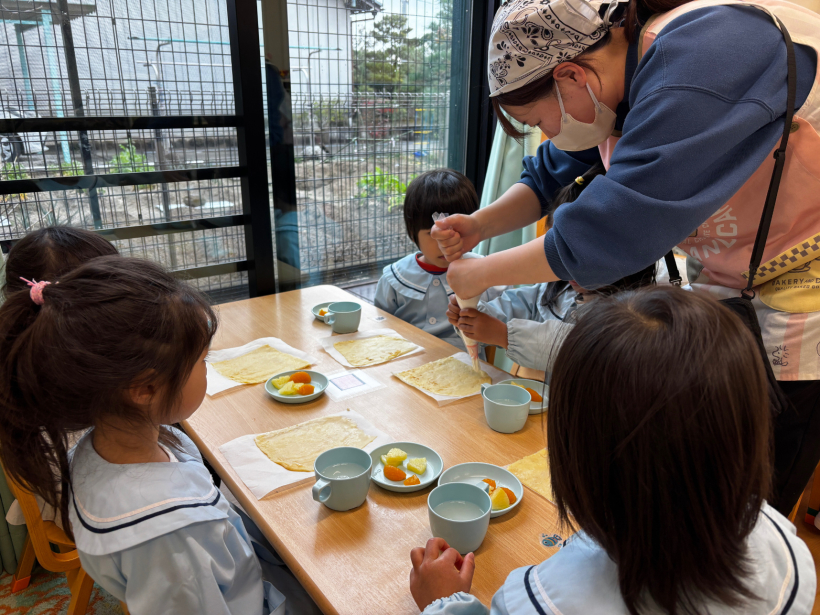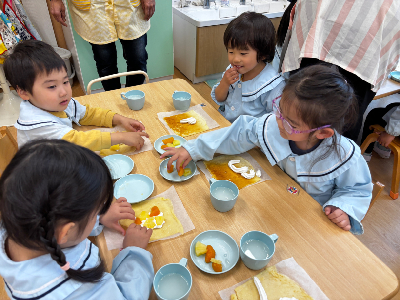 午後のおやつの時間に、クレープを作りました。