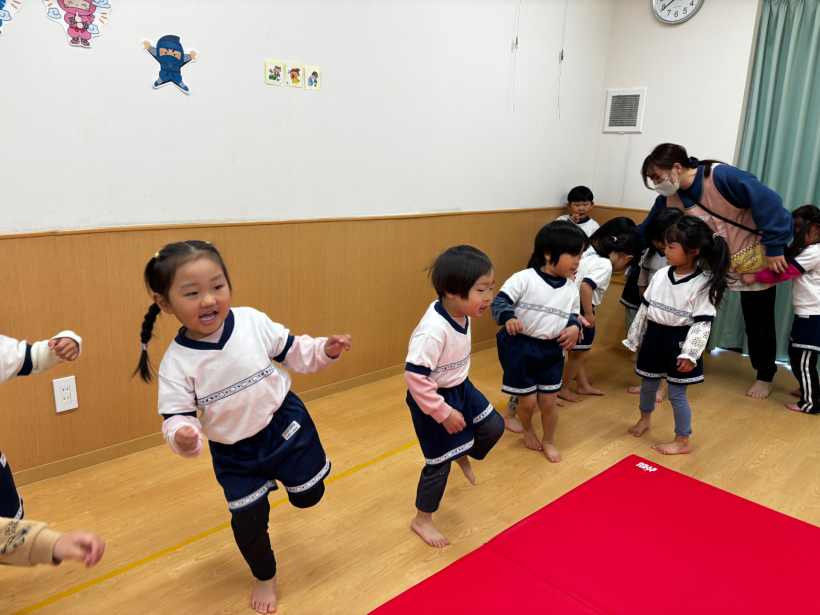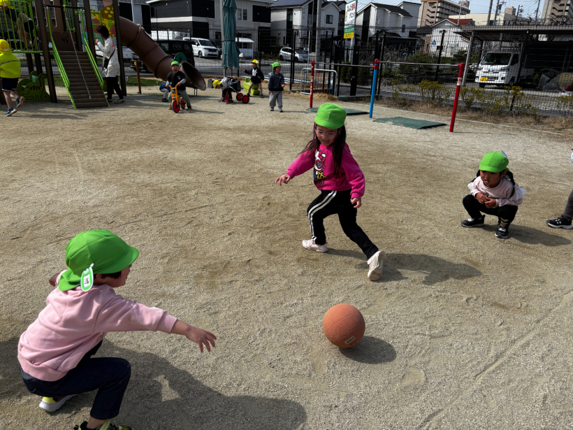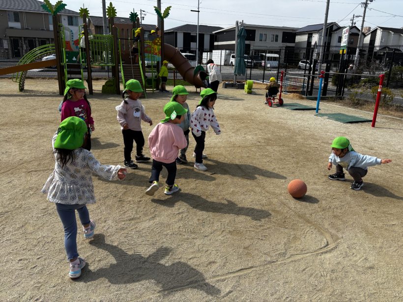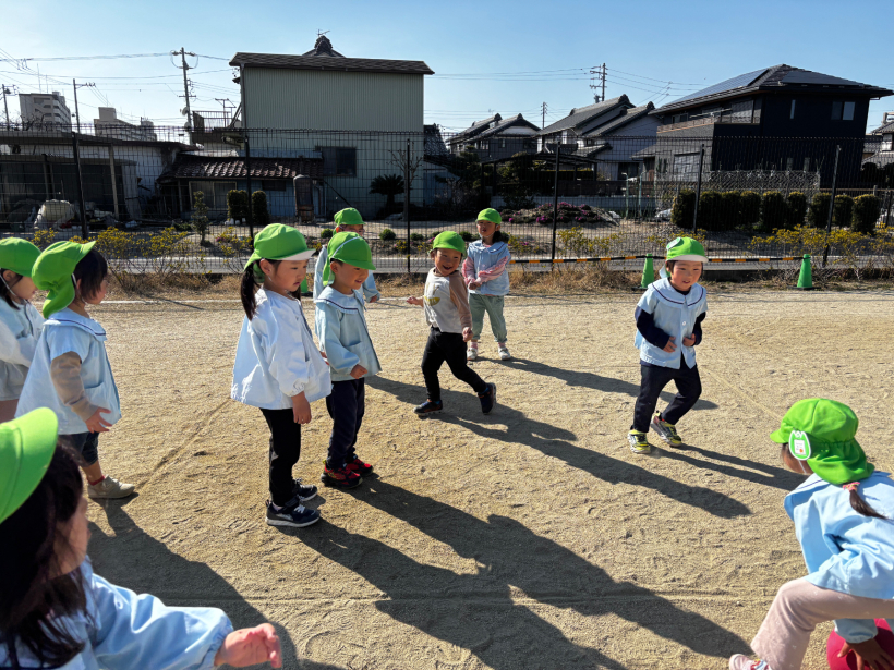 園庭遊びでは体操教室で行った、爆弾ゲームをして遊ぶことが好きな子どもたちです。