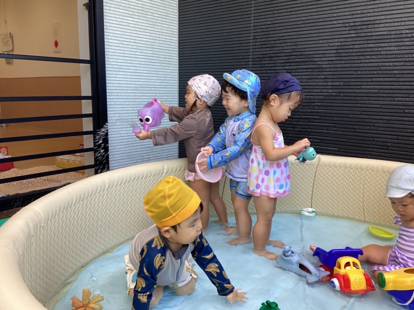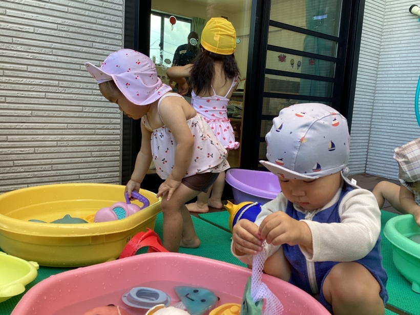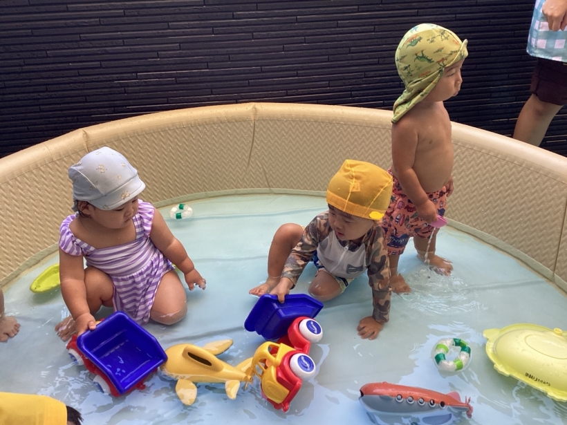 プールでもワニ歩きしたり、好きなおもちゃで楽しんでいました。
