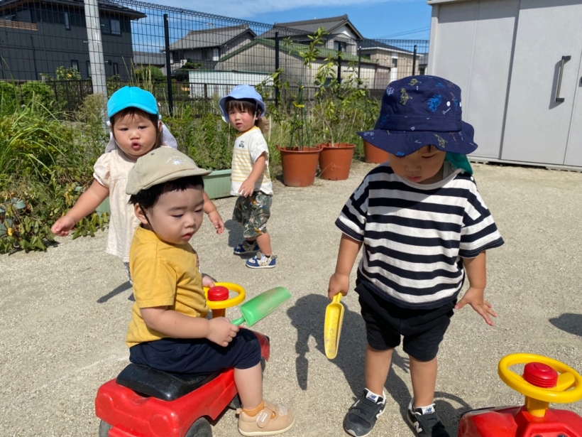 久しぶりの園庭遊びでは、好きな遊びを見つけたり、虫探しをしたりして楽しんでいました。