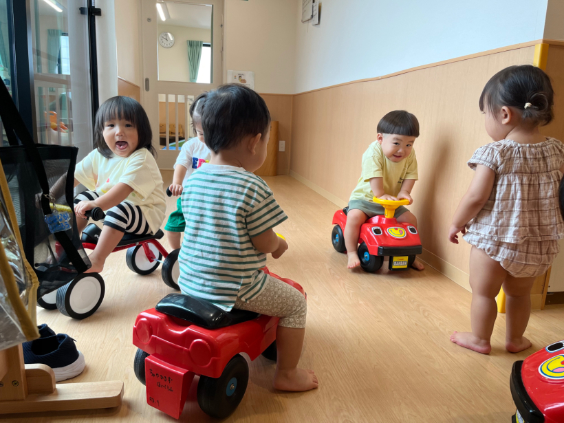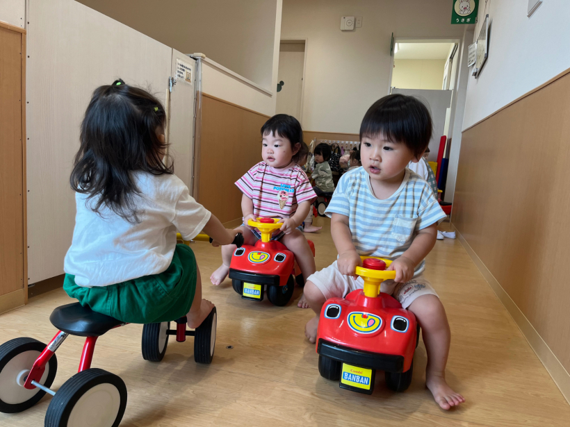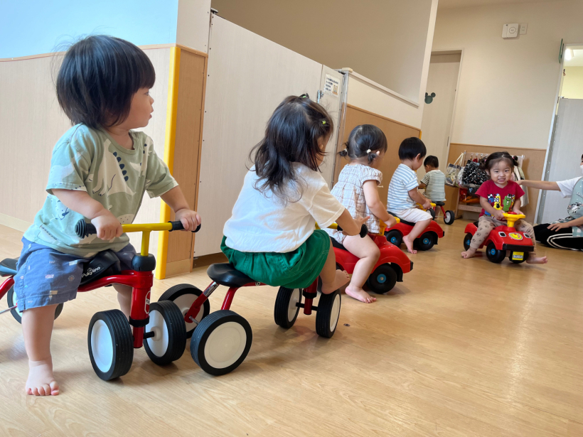 スポーツフェスティバルでは、コンビカーや四輪車に乗っている姿を見ていただけたらと思っています。