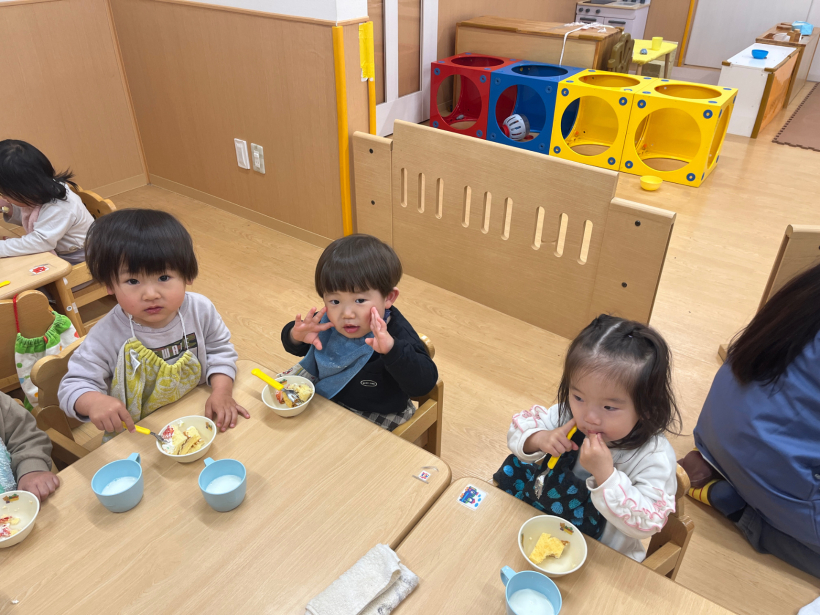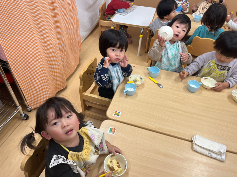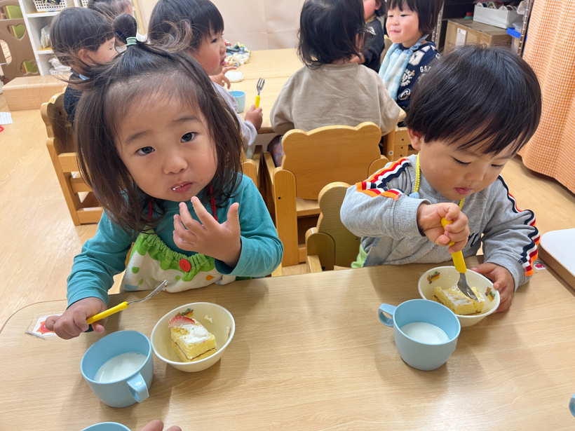 おやつを「おいしいね」といいながら食べる姿はとても可愛らしいです。