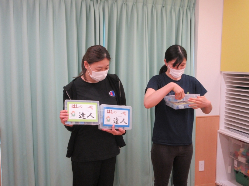 遊び終わった後、給食の先生から「箸の達人」セットをもらいました。
