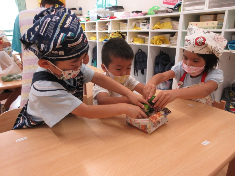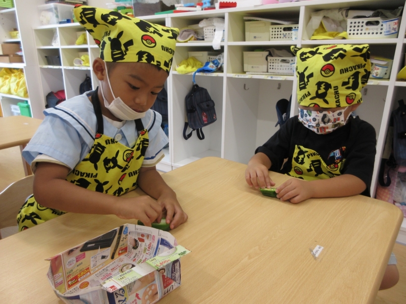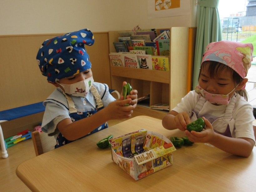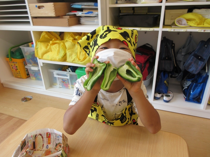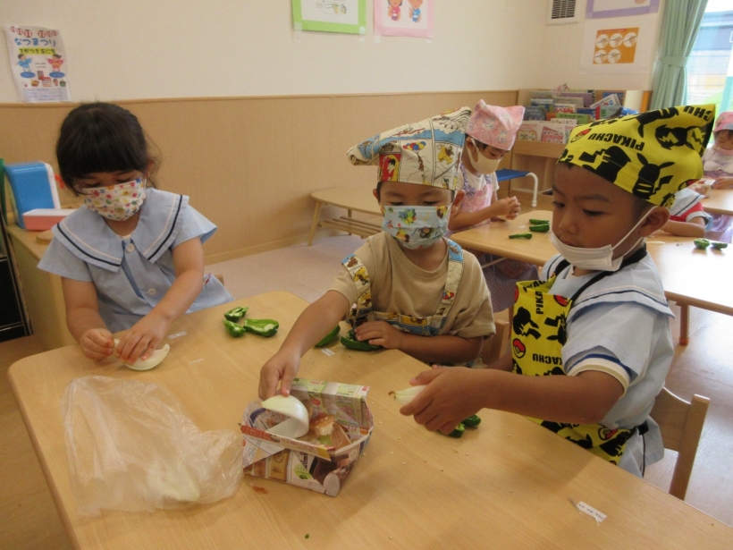 ピーマンの種取りや、玉ねぎの皮をむきながら「もっとやりたい」と話す子もいました。