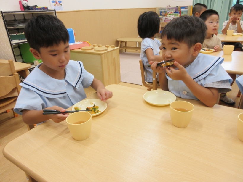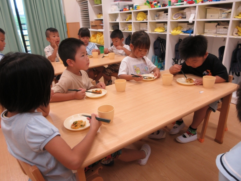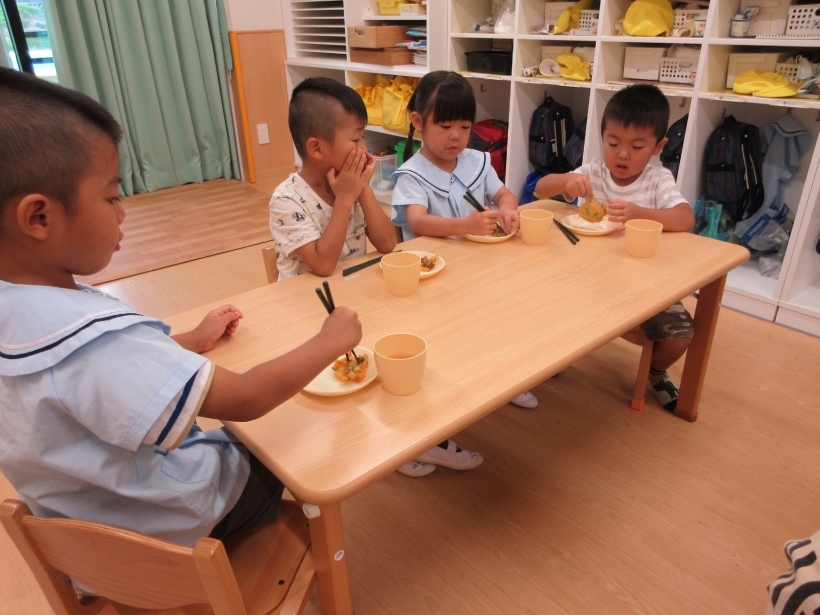 美味しそうに頬ばっている姿を見て、保育者も嬉しく思いました。