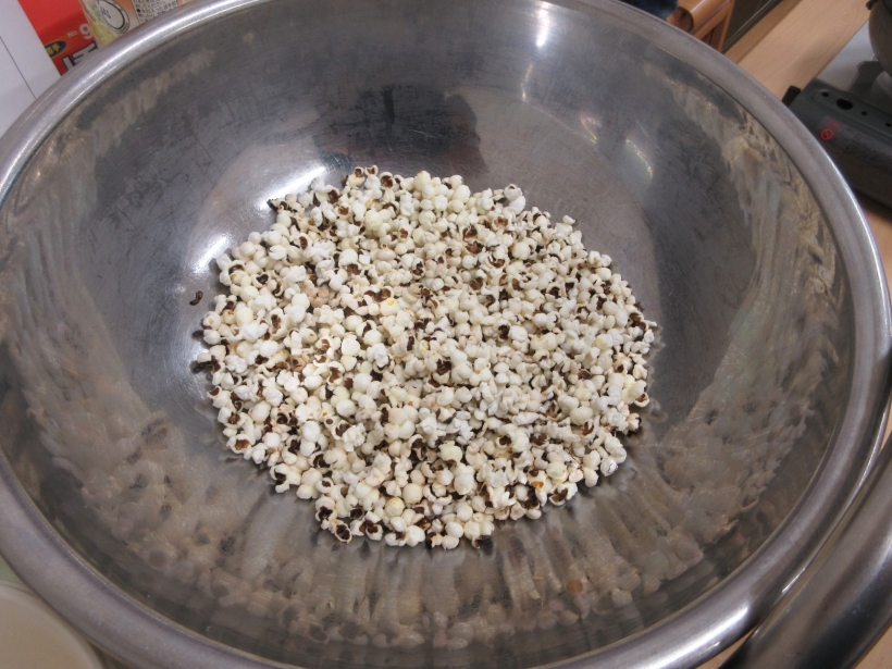とうもろこしがポップコーンに変身していきました。