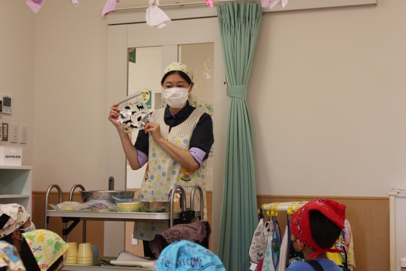 「ごはんつぶみたいになった」「ぺちゃんこになった」と、袋の中を確認しながらつぶしていました。