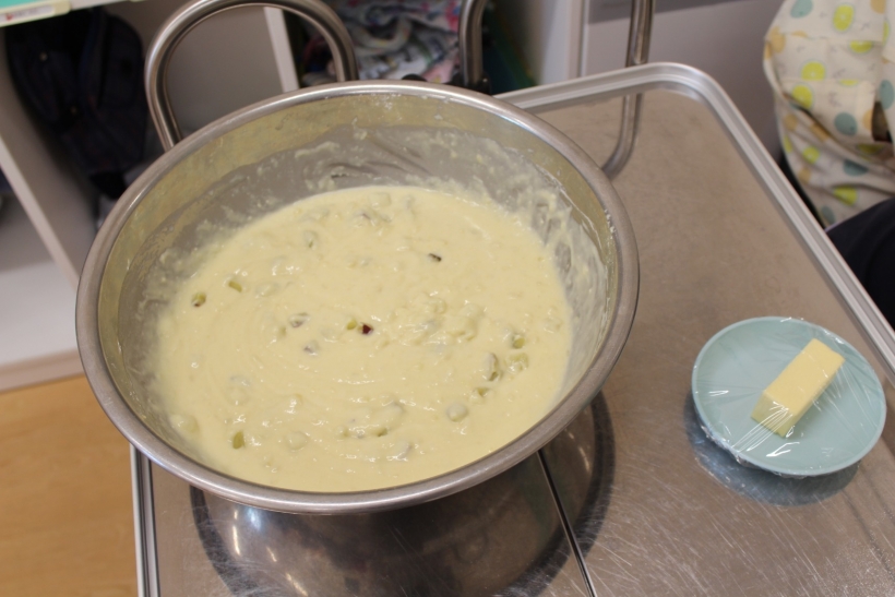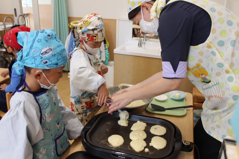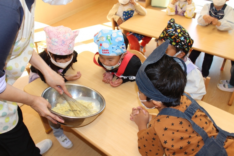 「かざんみたい!」と、トロトロの生地を溶岩に見立てている子もいました。