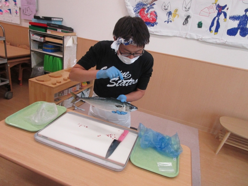 三枚おろしが終わると、「はやくたべたい」と給食が待ちきれない様子でした。